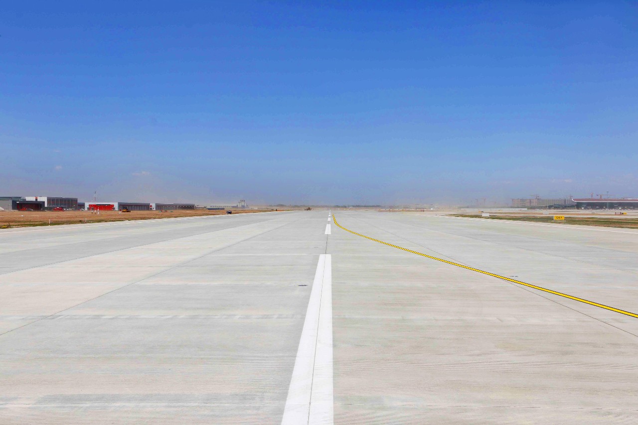 據(jù)悉,場道三標占地約170萬平方米,主要施工內(nèi)容為飛行區(qū)西一、西二部分跑道、排水、服務設施,場區(qū)土面區(qū),下穿通道等。本次驗收的道面工程61.2萬平方米,排水工程10598.5米。