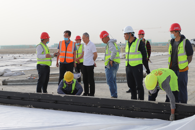 姚新民一行來(lái)到項(xiàng)目跑道道面混凝土試驗(yàn)段施工現(xiàn)場(chǎng),詳細(xì)聽(tīng)取項(xiàng)目最新進(jìn)展、下步計(jì)劃及存在的困難,對(duì)開(kāi)工以來(lái)項(xiàng)目施工進(jìn)展、工程質(zhì)量、安全文明施工等各項(xiàng)工作給予肯定。