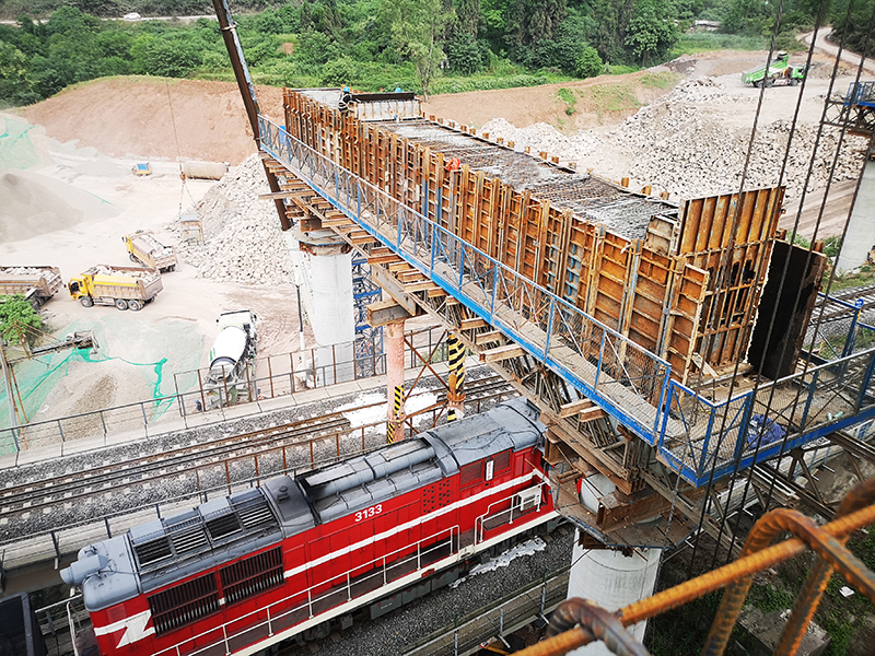 鐵路跨線橋左幅21號(hào)蓋梁跨度21.3米,為項(xiàng)目全線跨度最大的蓋梁,蓋梁施工上跨鐵路。施工中,項(xiàng)目積極開(kāi)展對(duì)外協(xié)調(diào),動(dòng)態(tài)調(diào)整施工,組織專項(xiàng)安全教育與交底,加強(qiáng)現(xiàn)場(chǎng)盯控,嚴(yán)把安全質(zhì)量關(guān),克服跨鐵路施工協(xié)調(diào)難度大、安全風(fēng)險(xiǎn)高及施工時(shí)間短等不利因素,確保施工建設(shè)安全平穩(wěn)可控。