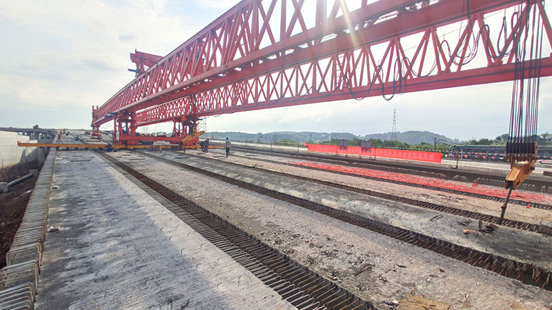 此次鐵路跨線橋箱梁架設(shè)全部完成,為后續(xù)橋面系及附屬施工打下了基礎(chǔ)。
