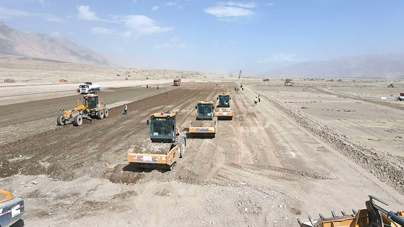 10月29日,第九總經(jīng)理部承建的新疆塔什庫爾干機(jī)場(chǎng)工程場(chǎng)道一標(biāo)段飛行區(qū)土石方與地基處理工程全面完成。