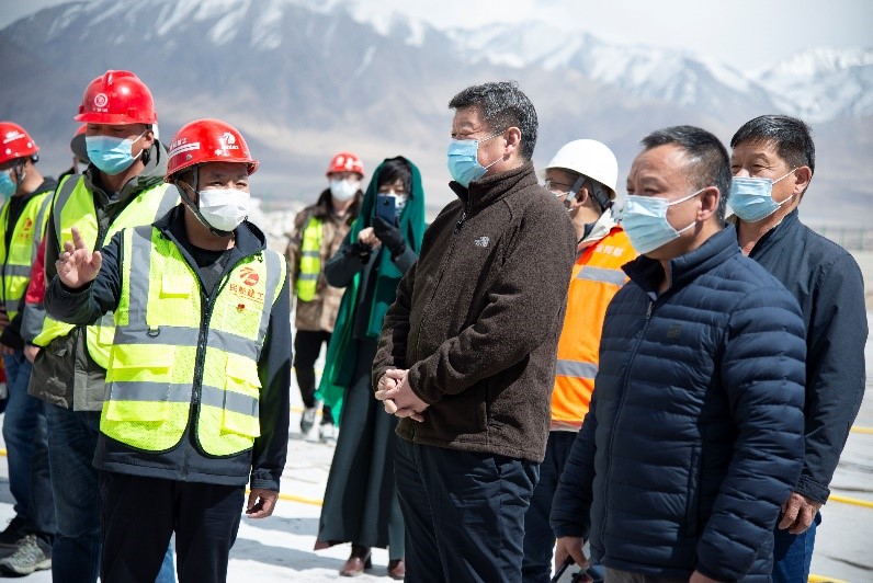 4月29日,新疆機(jī)場(chǎng)(集團(tuán))有限責(zé)任公司總經(jīng)理、烏魯木齊市副市長馬伊磊一行到公司第九總經(jīng)理部承建的新疆塔什庫爾干機(jī)場(chǎng)工程場(chǎng)道一標(biāo)段調(diào)研指導(dǎo)。