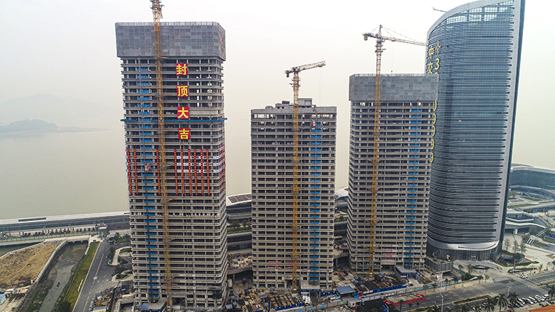1月18日,第十四總經(jīng)理部承建的廣州南沙國際郵輪母港綜合體項(xiàng)目二標(biāo)段海員之家公寓樓全部封頂。