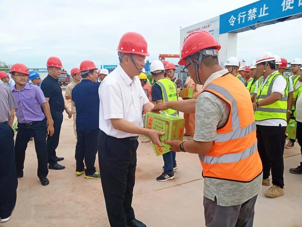 8月3日,湛江市人大常委會(huì)副主任、市總工會(huì)主席朱華雄一行,到第十六總經(jīng)理部承建的湛江機(jī)場遷建項(xiàng)目,為奮戰(zhàn)在一線的建設(shè)者們送去了王防暑降溫物品,并表達(dá)了深切的關(guān)懷與慰問。吳川市人大常委會(huì)副主任、市總工會(huì)主席招勵(lì)陪同。朱華雄對(duì)項(xiàng)目建設(shè)者戰(zhàn)高溫、斗酷暑,始終堅(jiān)守崗位、拼搏奉獻(xiàn)的精神表示感謝,要求項(xiàng)目要進(jìn)一步做好防暑降溫各項(xiàng)工作,做好工人高溫作業(yè)和安全防護(hù),確保項(xiàng)目安全平穩(wěn)推進(jìn)。