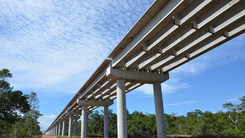 工程簡(jiǎn)介:項(xiàng)目開工日期為2014年3月20日,合同工期54個(gè)月,中標(biāo)合同金額約1.32億美元,項(xiàng)目全長(zhǎng)52KM,雙向兩車道,路基寬度12米,設(shè)計(jì)速度為80km/h,其中包括道路47.241KM,特大橋一座(奧果韋河特大橋),長(zhǎng)4707m,北汊主橋采用65+120+65=250m連續(xù)剛構(gòu),南汊主橋采用35+60+35=130m連續(xù)箱梁,其余引橋采用30m預(yù)應(yīng)力砼先簡(jiǎn)支后結(jié)構(gòu)連續(xù)的等高連續(xù)T梁,52m中橋一座。